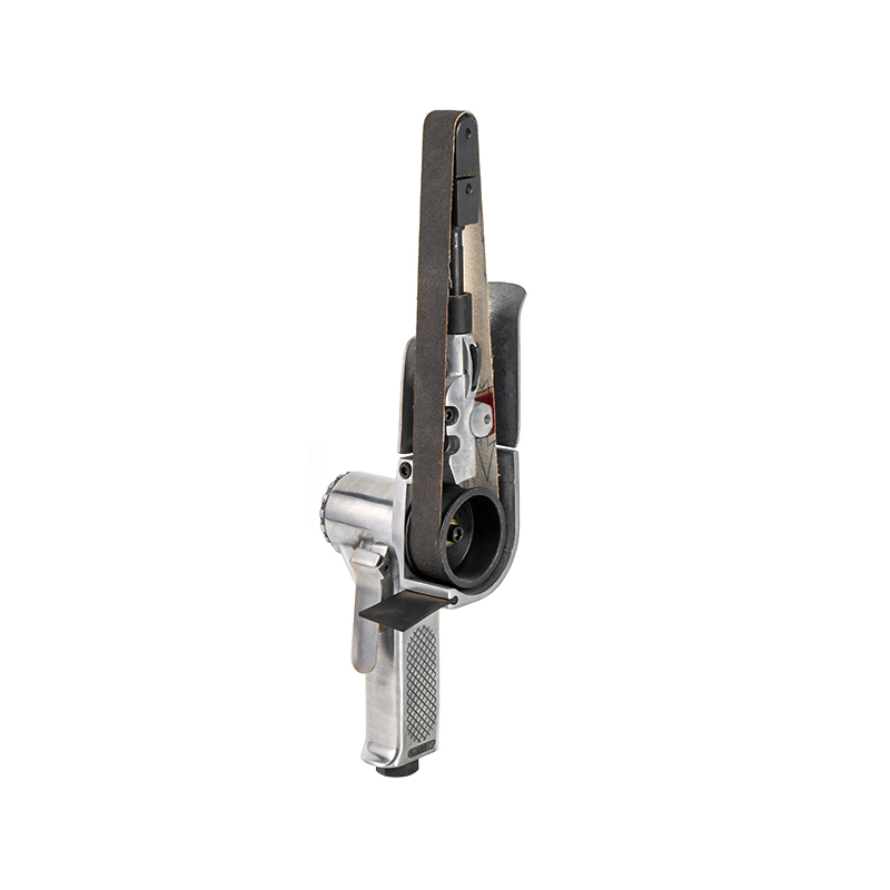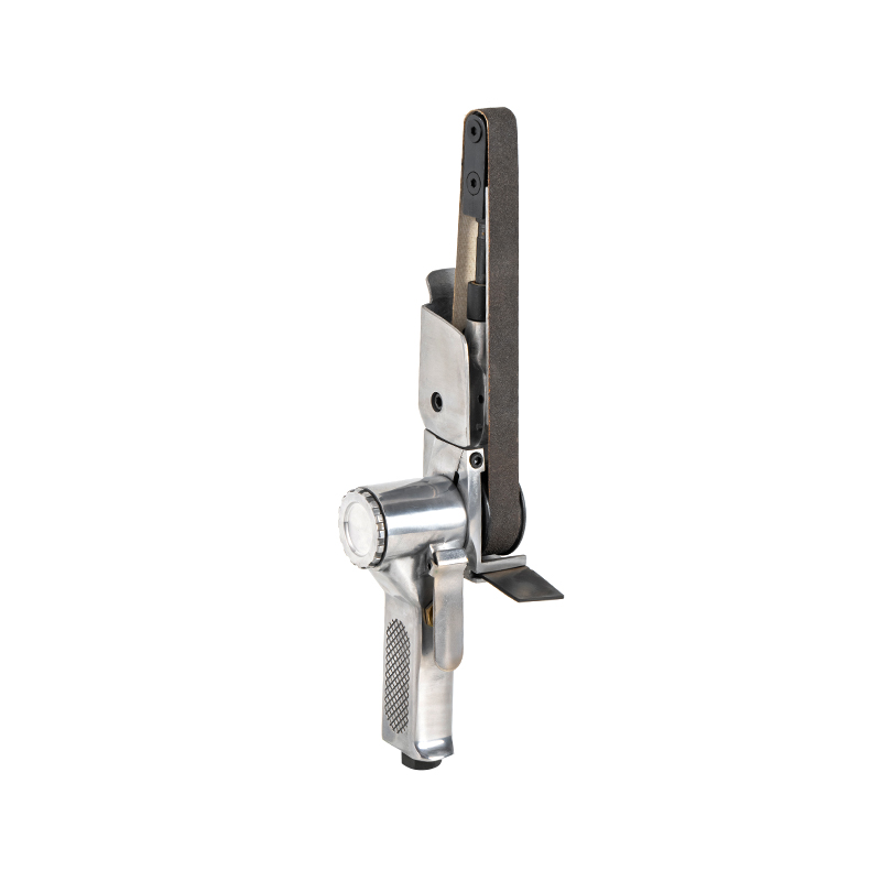 20MM铁制手持式气动砂带机是一种常用于金属加工和表面处理的工具,它由一个手持式机身和一个可更换的砂带组成,砂带负责磨削、打磨或抛光工件表面。它通过压缩空气驱动,提供高速旋转的砂带运动。用户可以通过控制工具的操作手柄来调整砂带的工作位置和角度,以便有效地处理工件表面。这款砂带机主要用于金属加工中的去毛刺、表面抛光和平整处理。例如,在焊接后的焊缝去毛刺、金属表面的粗糙磨光等工序中广泛应用。手持式设计使其操作方便灵活,适用于各种大小和形状的工件。在使用前需检查砂带的磨损情况,确保砂带安装正确并牢固。使用时需戴好个人防护装备,避免磨尘对身体和呼吸系统的伤害。